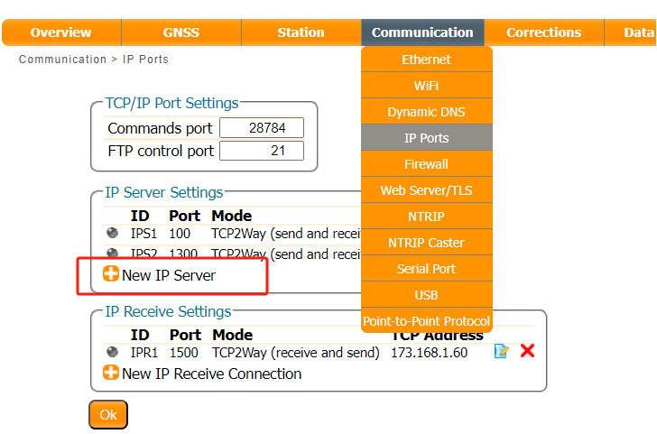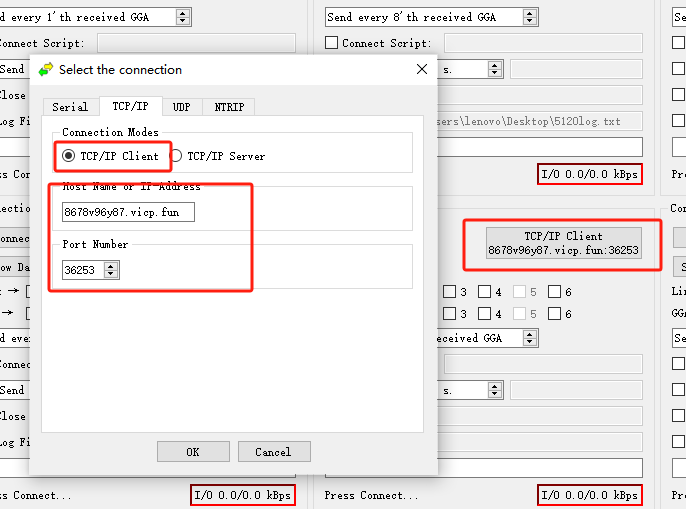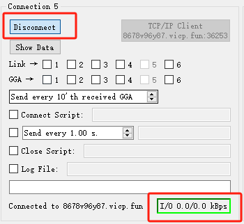 ② Subsequently, in the office, use software that can connect to network ports (such as Data Link in RxTools of Septentrio), enter the specified external network address and port, and communicate with field station equipment. Remote control can be achieved by entering the command line.