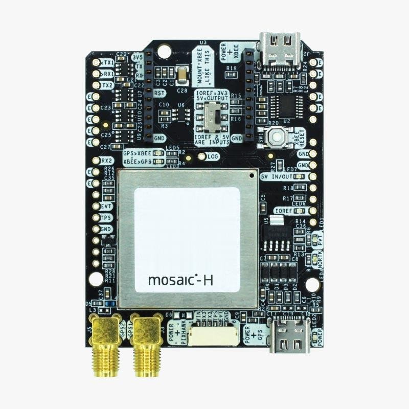 simpleRTK3B Heading is a standalone board designed to evaluate dual-band RTK GNSS technology, delivering centimeter-level positioning accuracy along with heading and microSD datalogging capabilities. Built around the Septentrio mosaic-H module, it can operate independently or as a shield for platforms such as Arduino, Raspberry Pi, Nvidia Jetson Nano, and STM32 Nucleo. This allows for up to 20 RTK positions and attitude (heading) measurements per second. This board is particularly suited for advanced projects utilizing the Pixhawk autopilot.